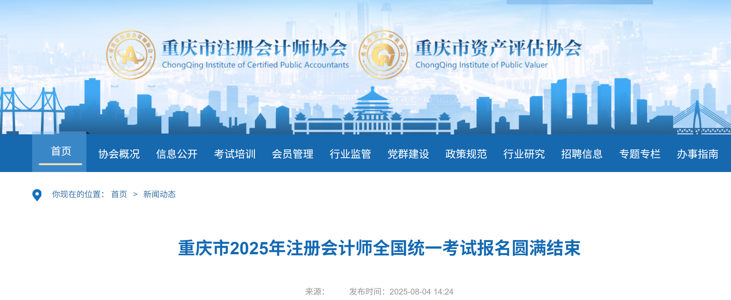 按照財政部考辦的統一部署,重慶市2025年注冊會計師全國統一考試專業階段及綜合階段報名工作已圓滿結束。全市專業階段報名1.59萬人,3.51萬科次;綜合階段報名1013人。